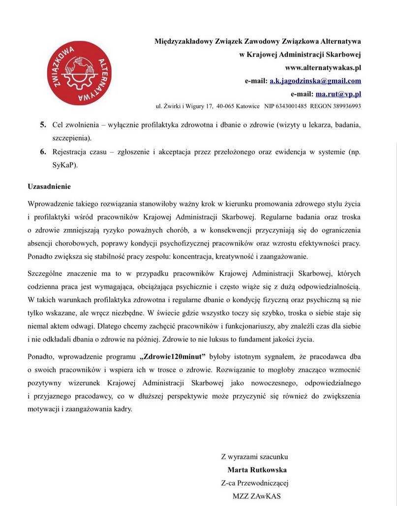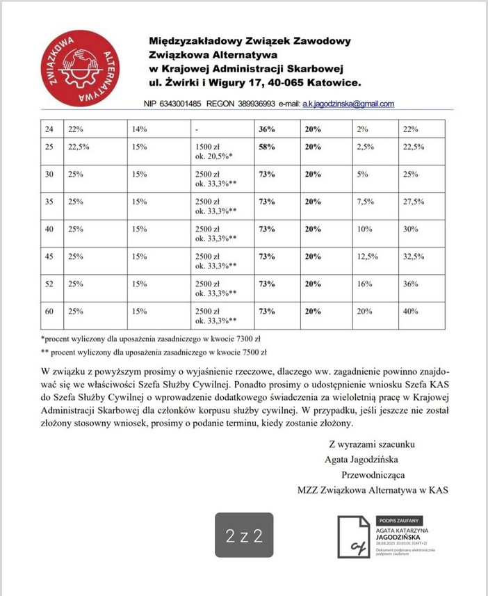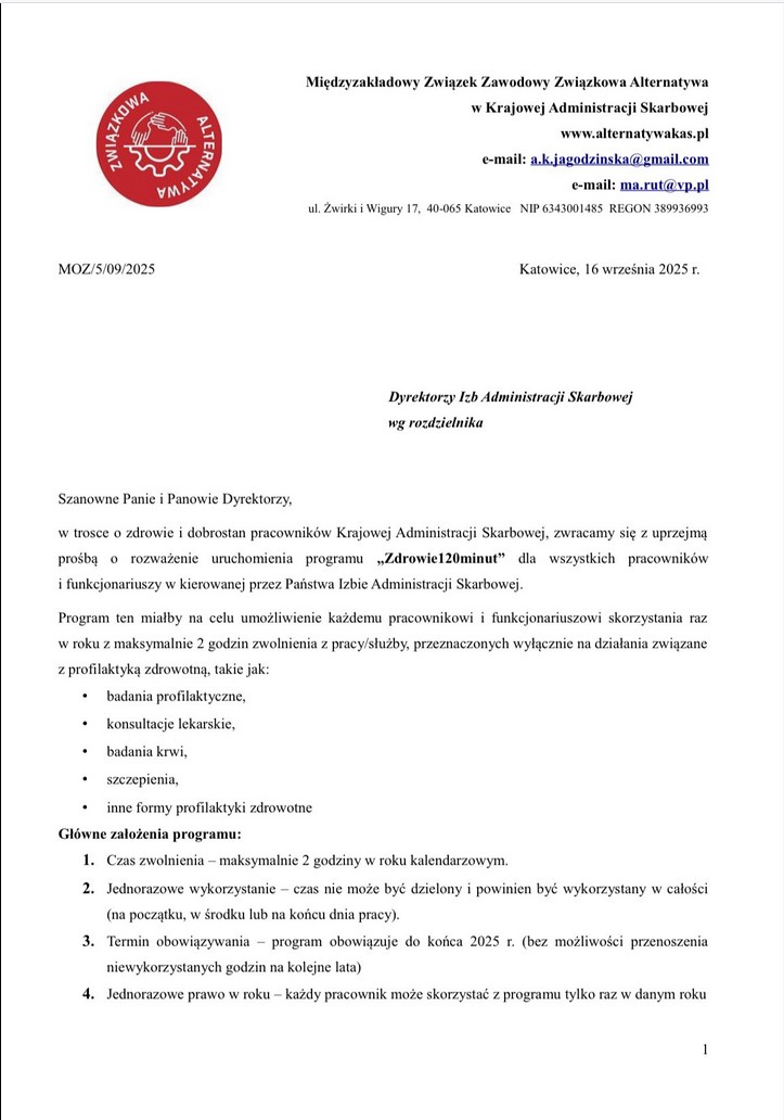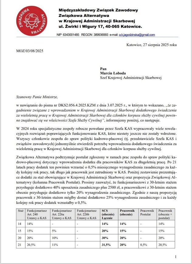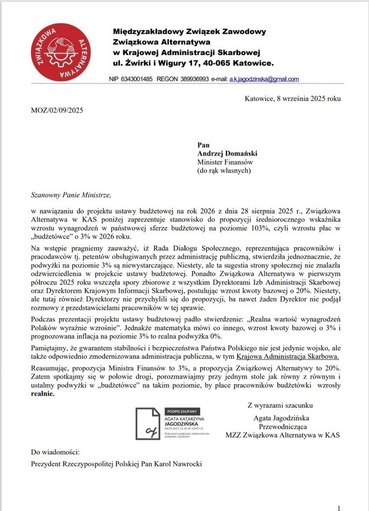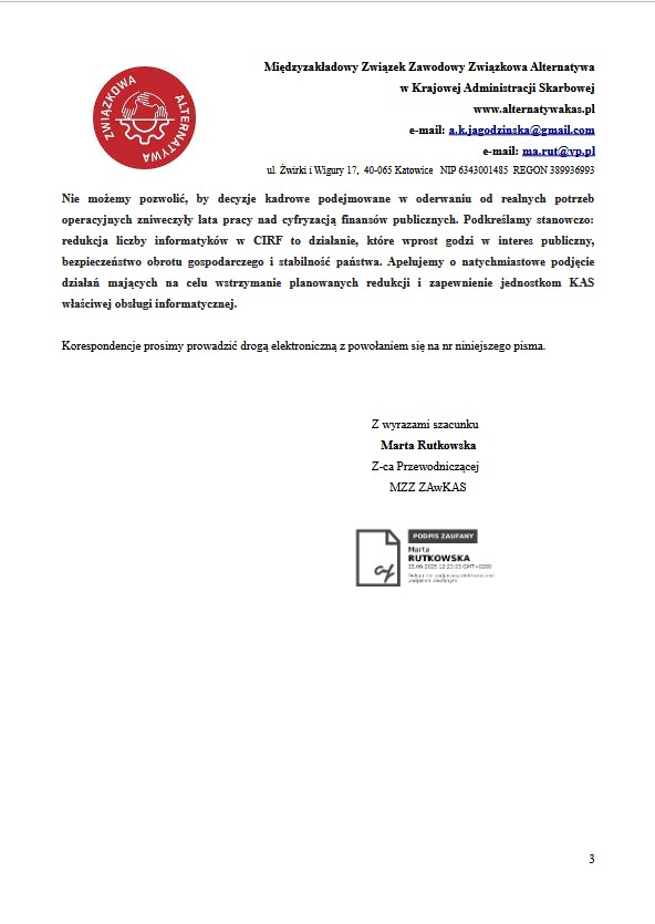 Zarząd MZZ Związkowa Alternatywa w KAS